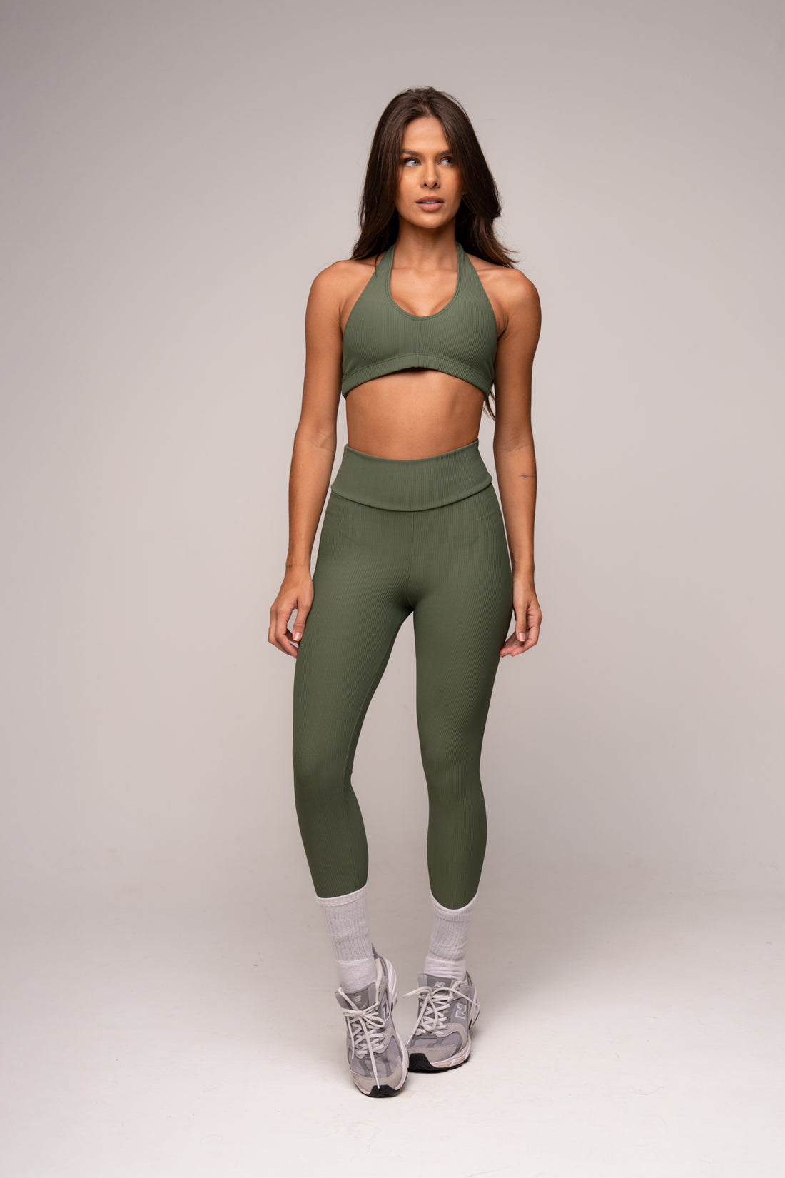 Conjunto Legging e Top Frente Única Verde Oliva Flow