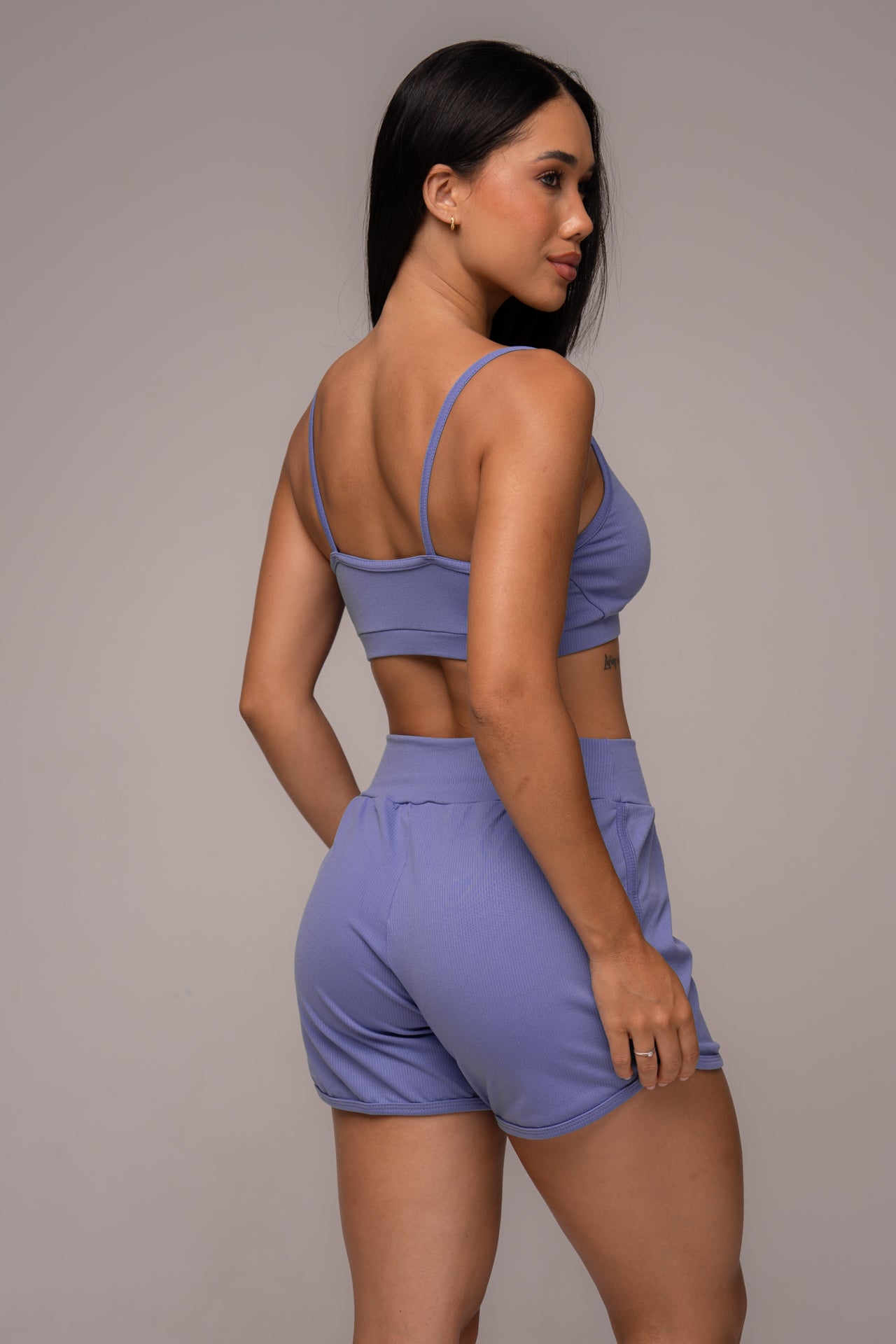 Conjunto Fitness Texturizado Short e Top Lavanda