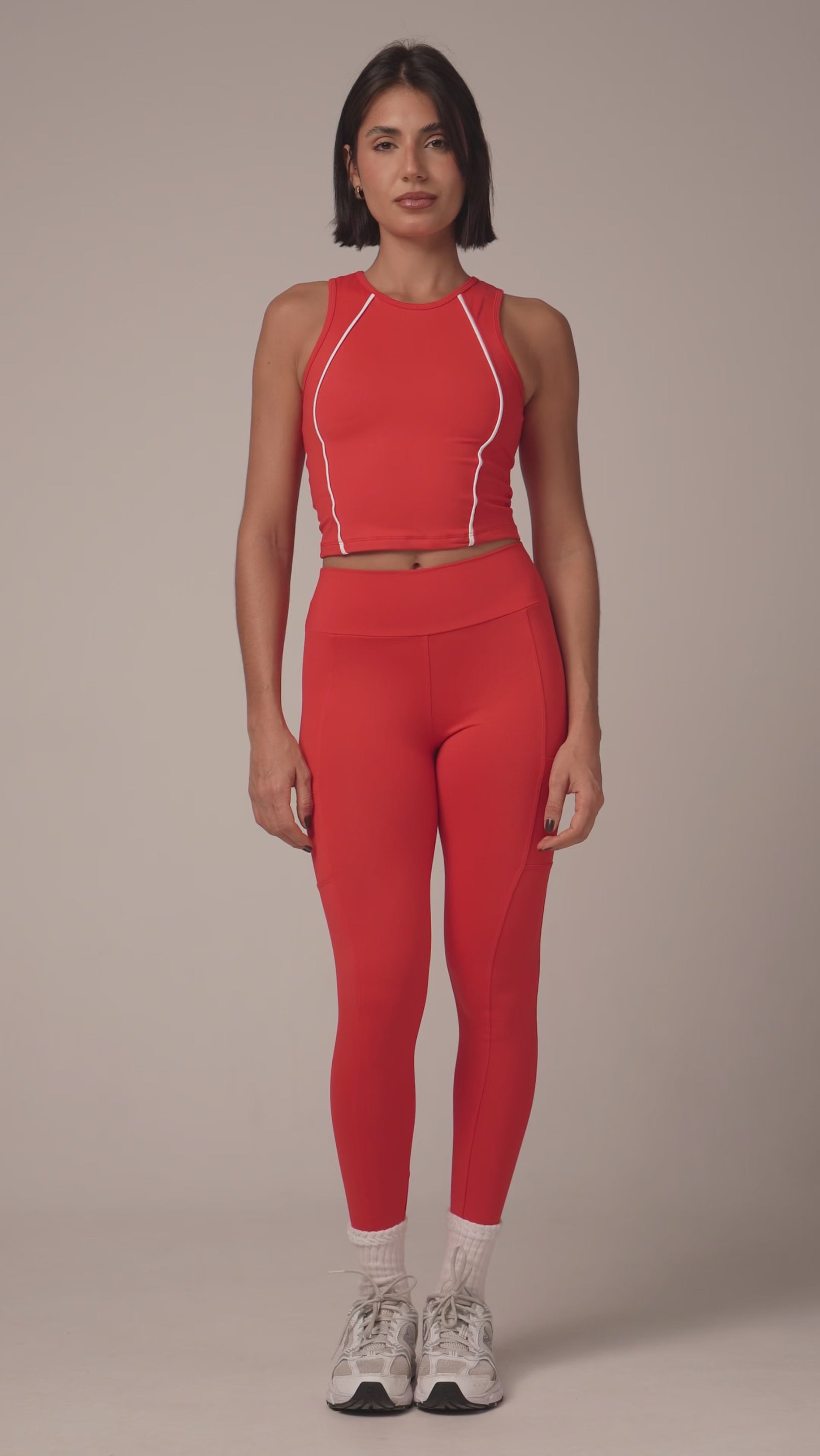 Já a legging conta com bolsos laterais funcionais, ideais para carregar pequenos itens como celular, chaves ou cartões, com praticidade e estilo no dia a dia.
