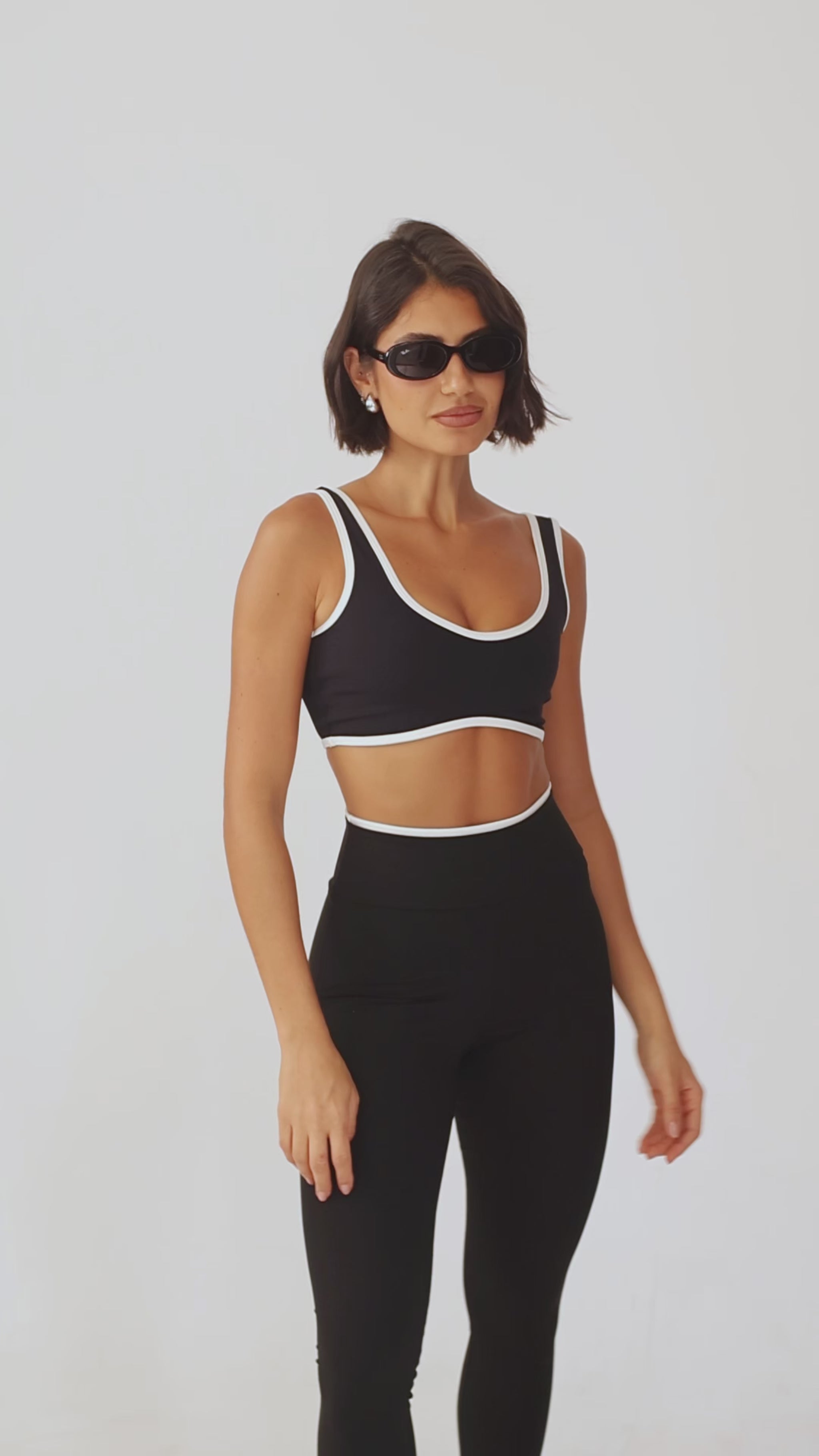 O Top Viés apresenta design anatômico e acabamento contrastante que valoriza a silhueta com sustentação e elegância. Já a Legging Cós Dupla Face modela sem apertar, com caimento impecável e versatilidade para compor diferentes looks.