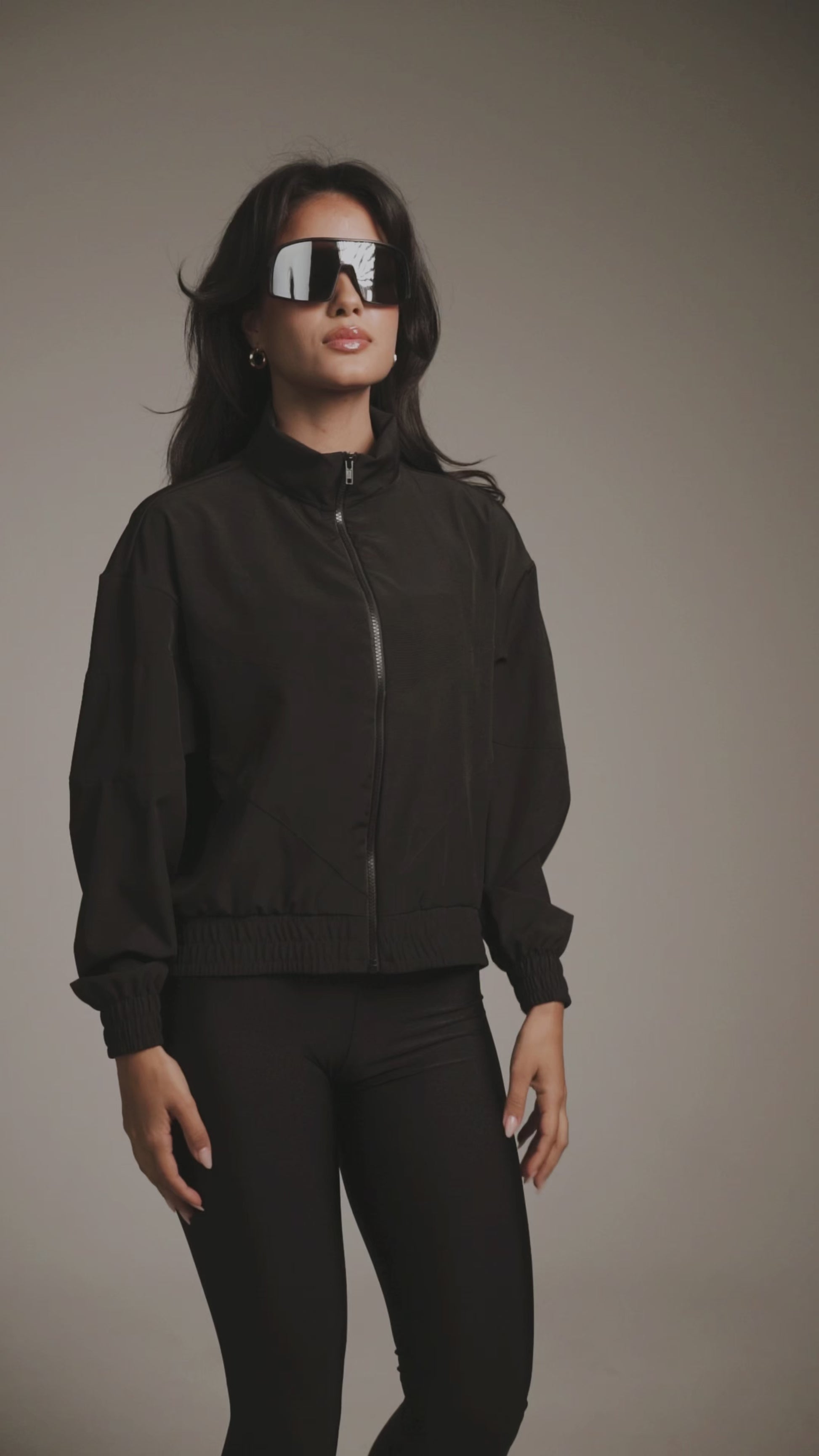 Com modelagem moderna, possui gola alta, fechamento frontal em zíper e recortes estratégicos que valorizam o design, assegurando liberdade total de movimento. O cós e punhos com elástico oferecem ajuste perfeito, mantendo a peça firme ao corpo.