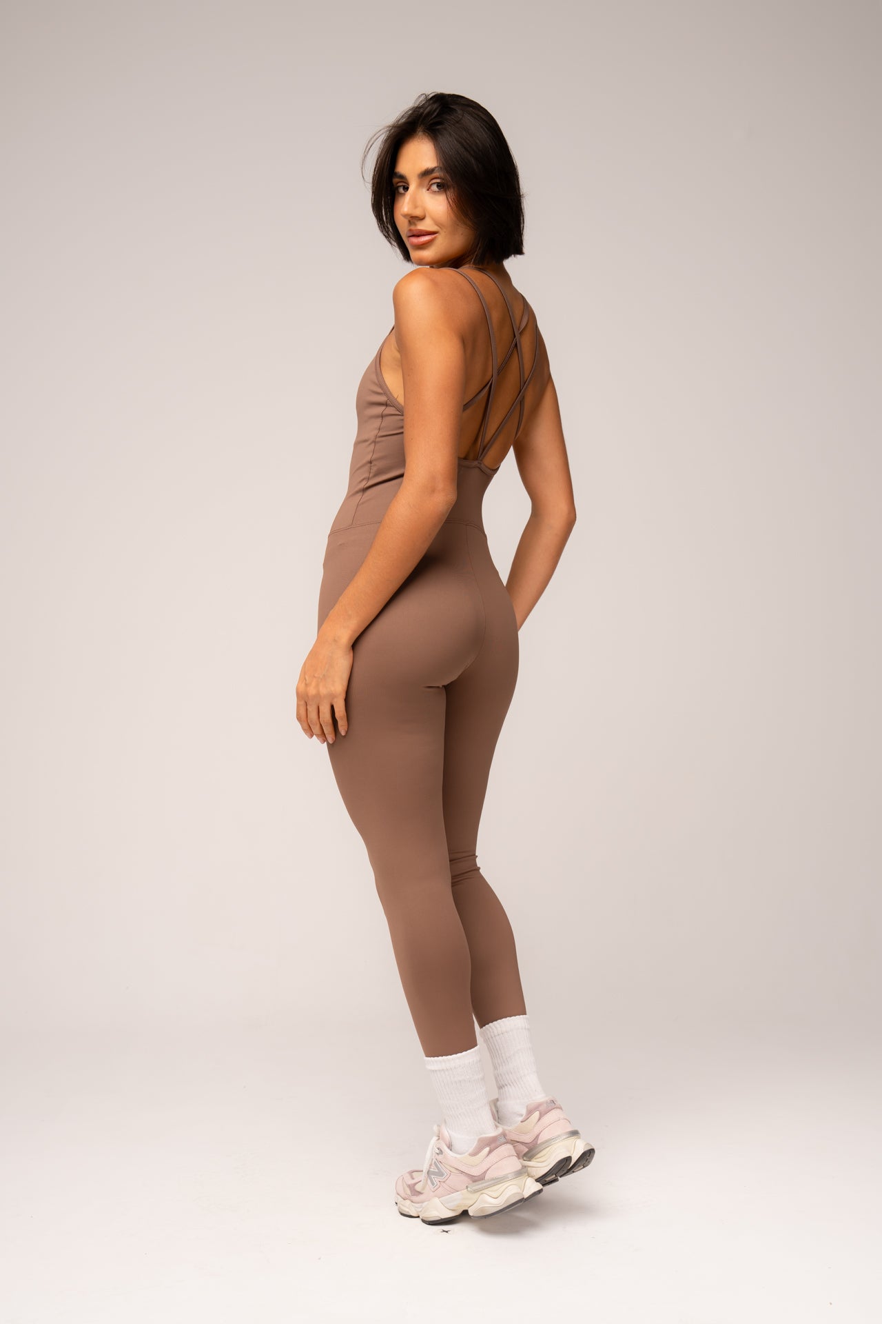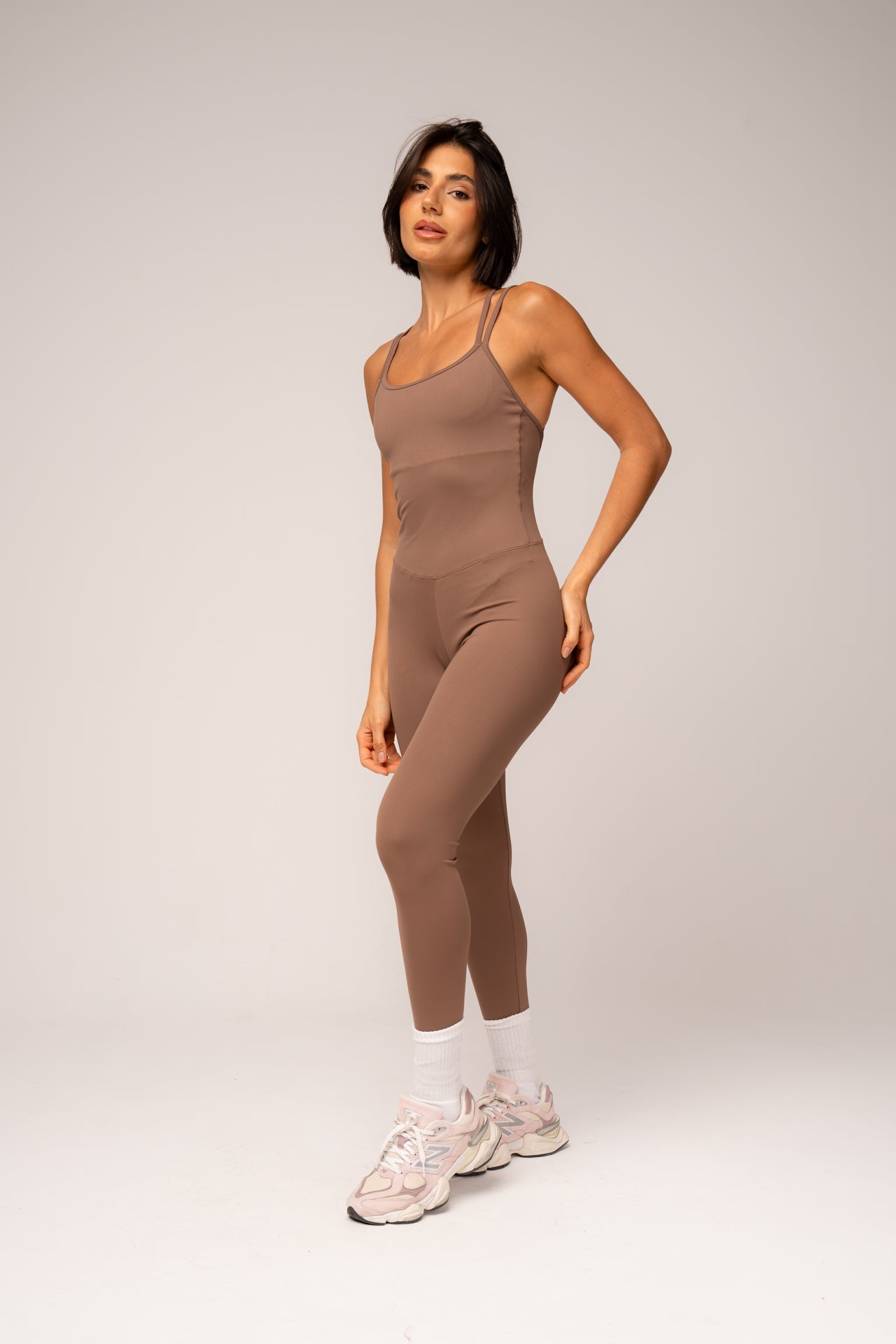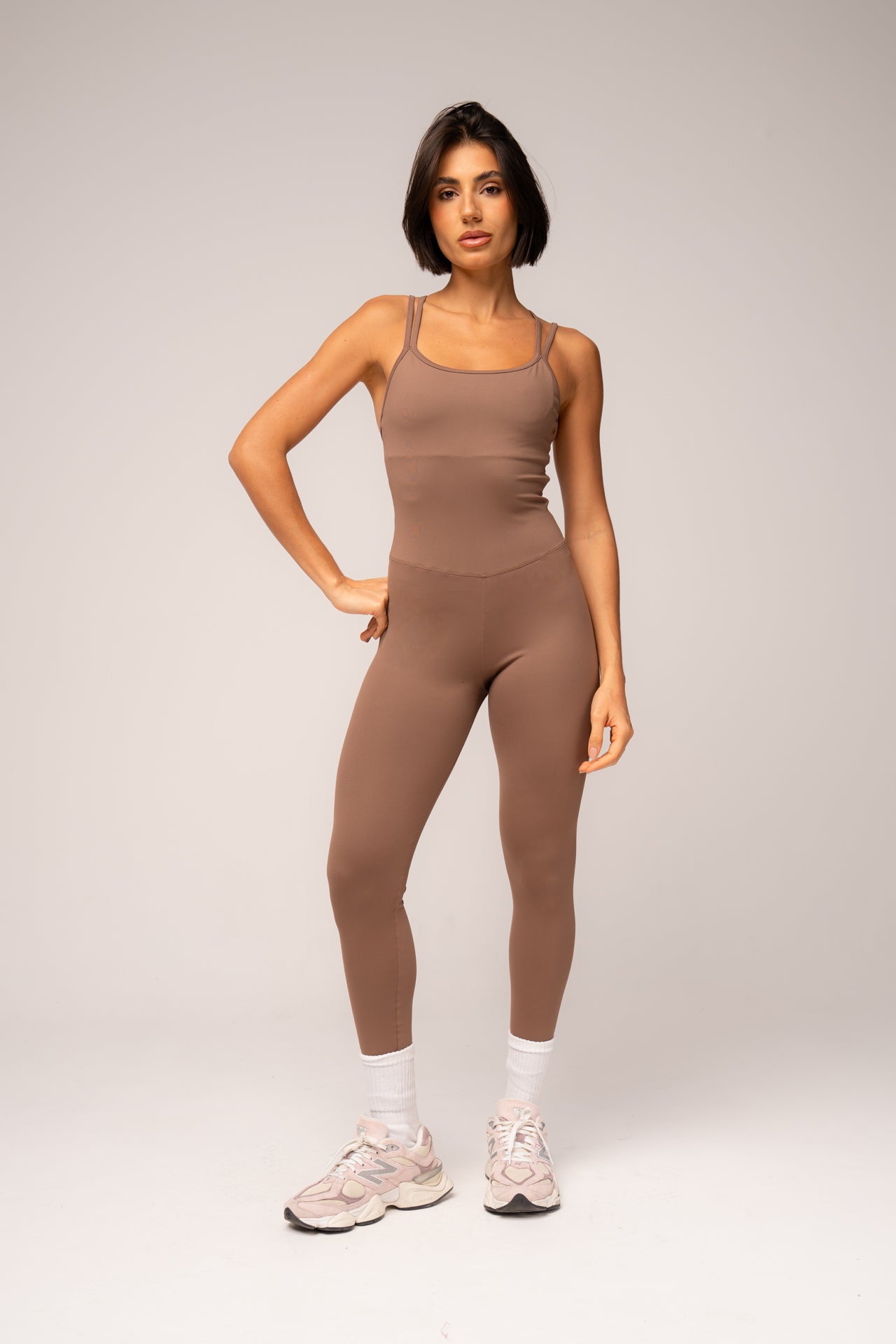 O Macacão Cosmo une tecnologia e estilo em uma peça única, produzido em Suplex Poliamida de dupla frontura, que oferece elasticidade bilateral, respirabilidade, alta absorção de suor e média compressão para um caimento firme e confortável. O design traz decote arredondado, modelagem que valoriza as curvas e costas cruzadas em X, criando um visual sofisticado com sustentação. O tecido possui proteção solar 50FPS e toque macio, garantindo performance tanto nos treinos quanto na rotina. Sem transparência e com caimento impecável, é ideal para quem busca conforto, liberdade de movimento e um look moderno e versátil.