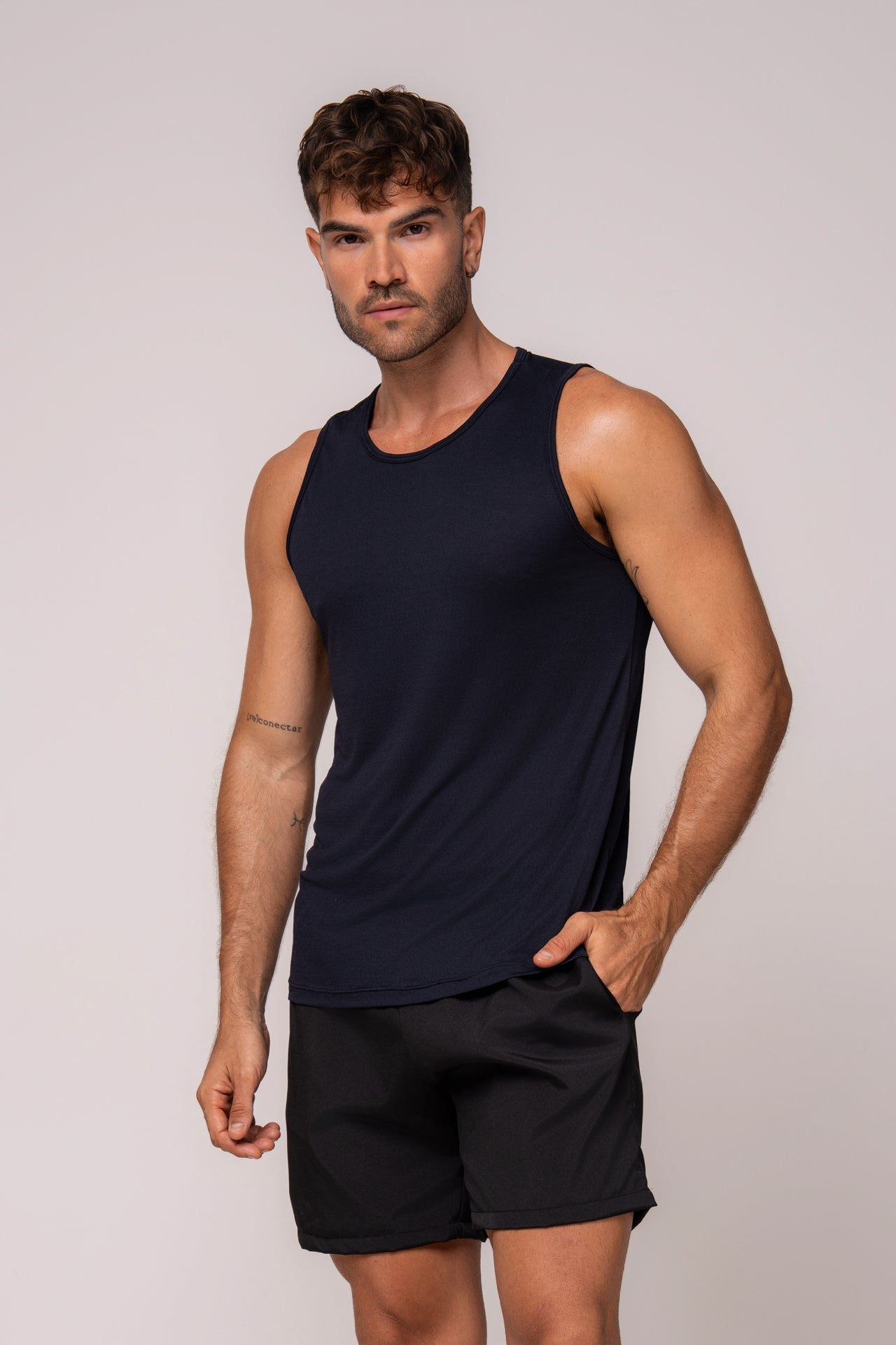 Com modelagem anatômica e cavas amplas, garante mobilidade total para musculação, corrida e treinos funcionais. O tecido leve e macio proporciona toque suave e excelente ventilação.