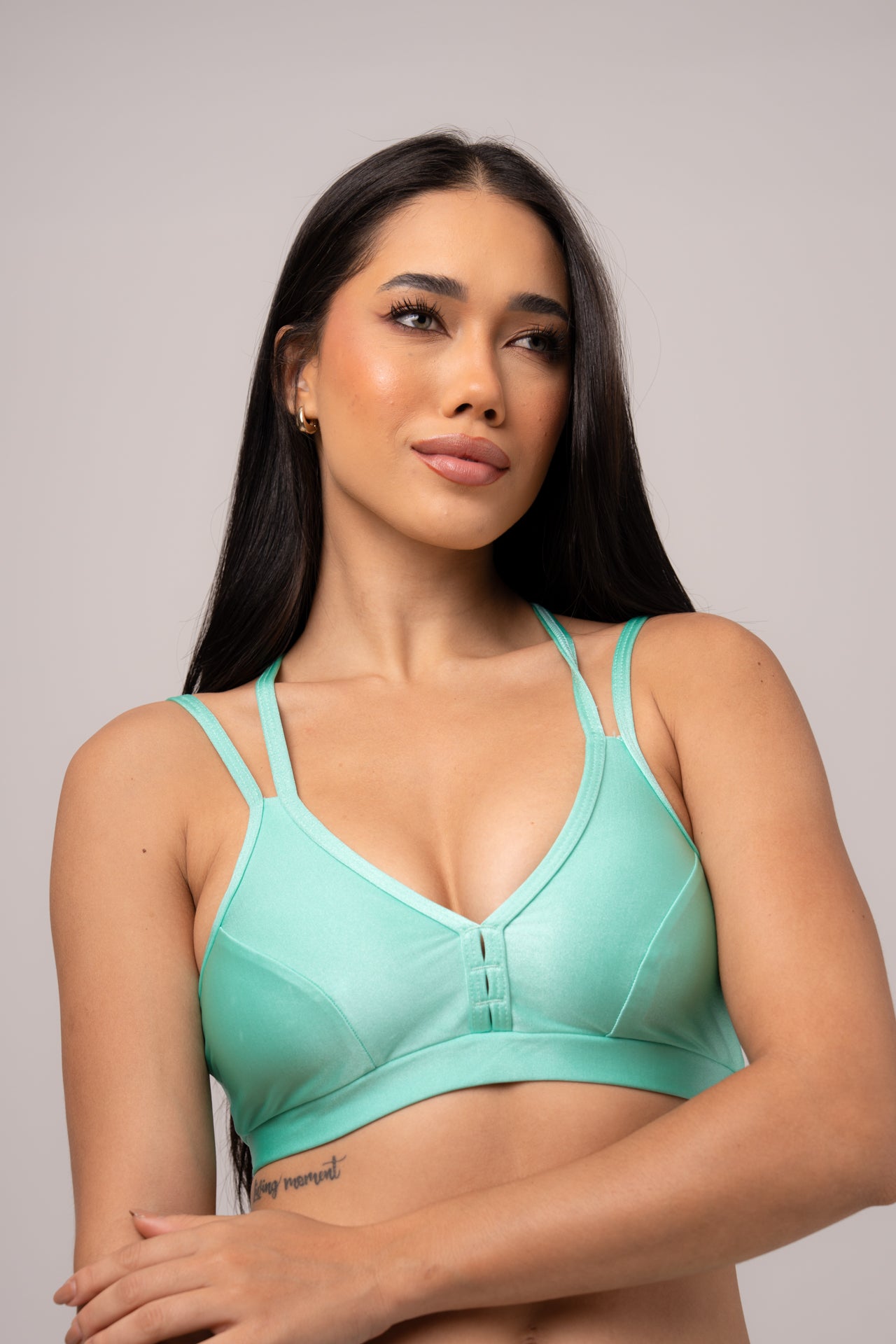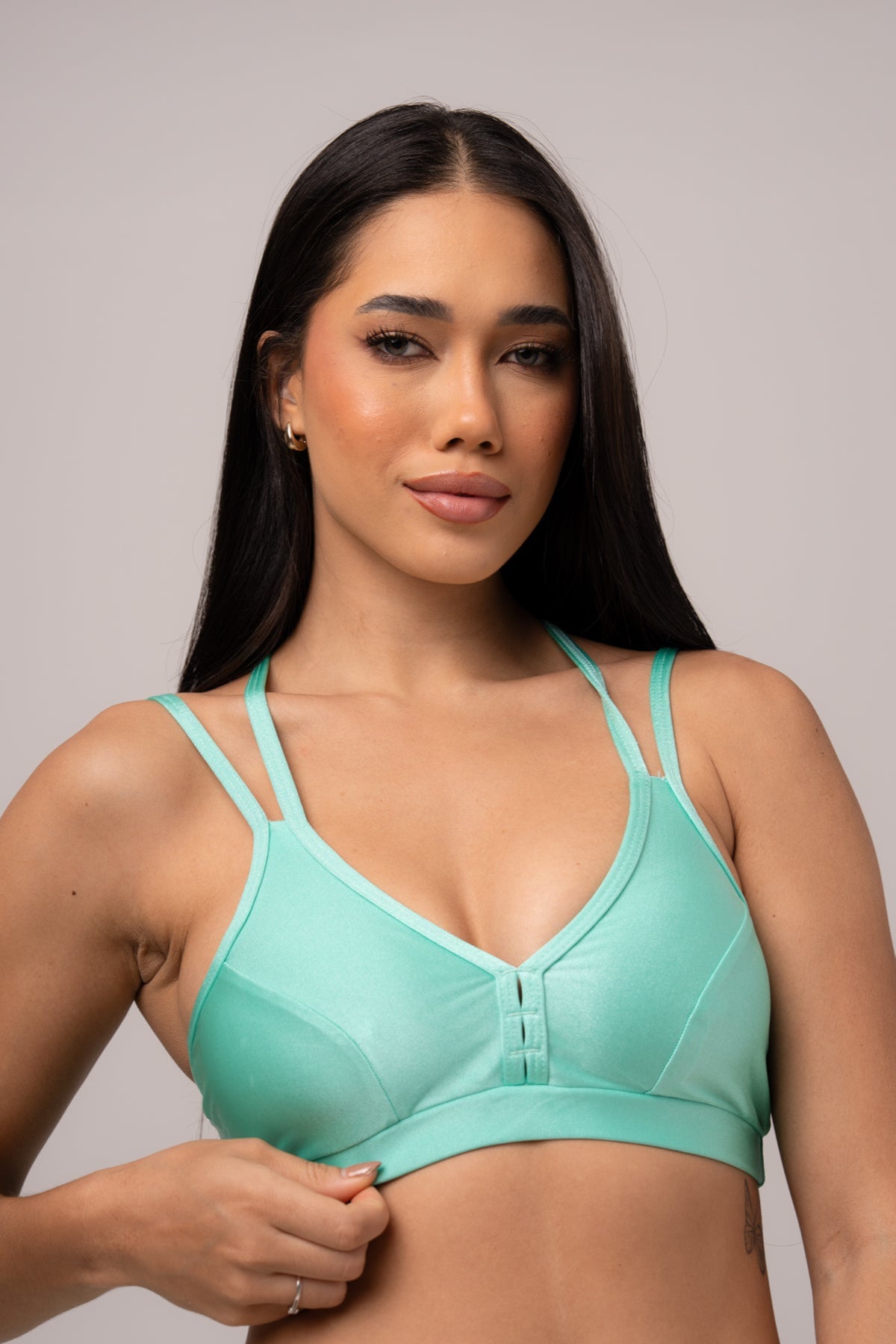 O Top Nó combina design moderno e tecnologia para oferecer sustentação, estilo e versatilidade. Produzido em tecido Trilobal Poliamida, possui leve brilho sofisticado, toque macio e alta elasticidade, garantindo conforto absoluto e liberdade de movimentos em qualquer atividade.
